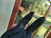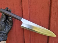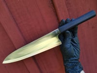Balanced about 3 cm in on the blade from heel, so slightly blade forward balanced.